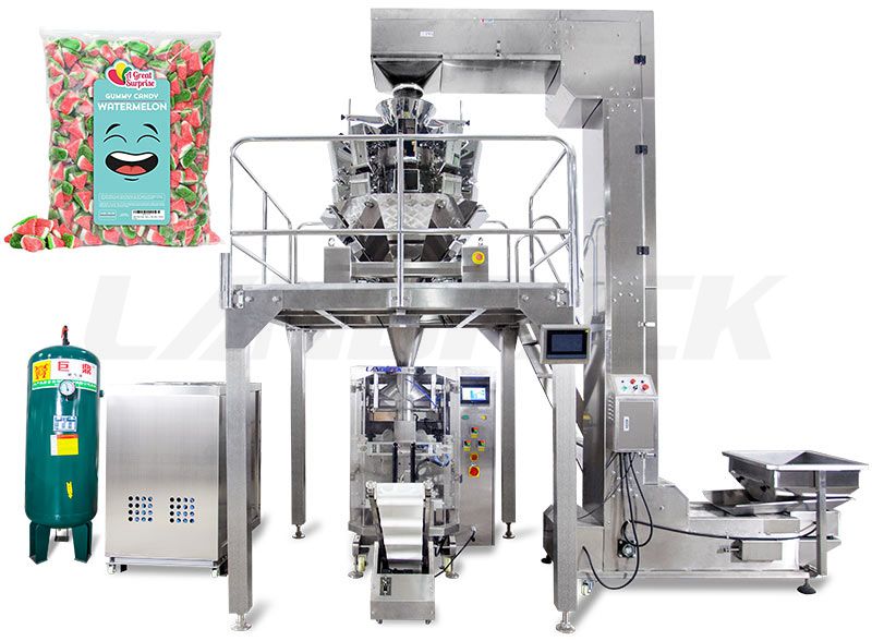 Application: Automatic Candy Pouch Nitrogen-Filled Packing Machine, it is suitable for all kinds of products that need to extend the shelf life and keep fresh, such as potato chips, candy, popcorn, rice, puffed food.