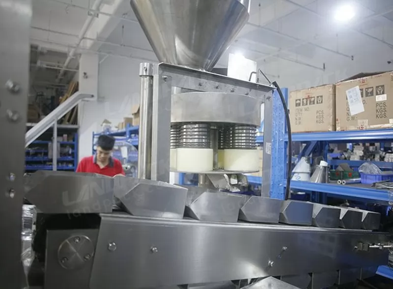 Suitable for the automatic packaging of granular food, and can automatically put the desiccant in the packaging bag, the such as nuts, snacks, beans, peanut, cashew packing etc.