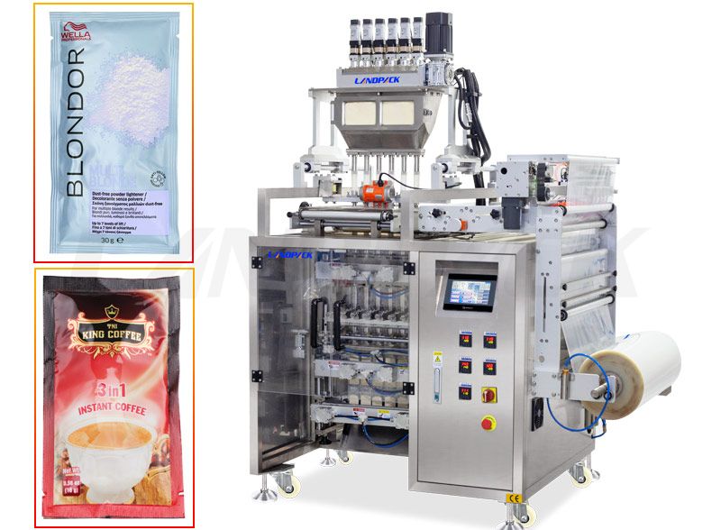 Suitable for packing loose, non sticky powder material in the medicine, food, daily chemical and other industry, and automatic packing into sachets with measuring requirement. Such as coffee powder, milk powder, soymilk powder, starch, drug, pulveres, and so on.
