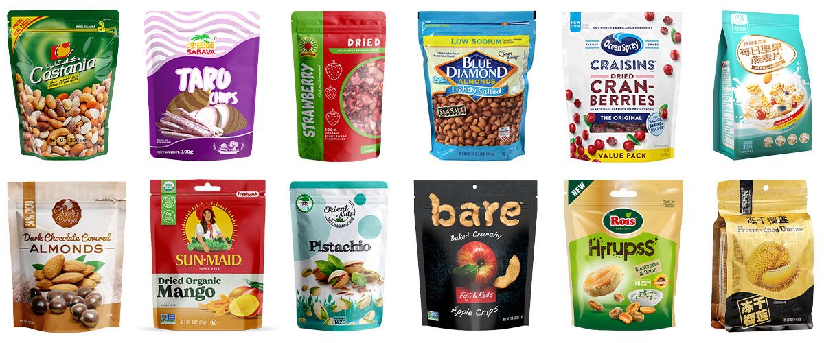 ● It is suitable for weighing and packing grain, stick, slice, globose, irregular shape products such as puffy food, snacks,candy,jelly,seeds,almonds, chocolate, nuts, pistachio, pasta, coffee bean, sugar, chips, cereals, pet food, etc.